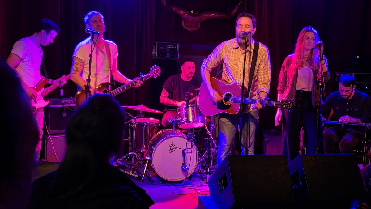 Der Sänger und Gitarrist in guter Spiellaune. Und auch Trinklaune.